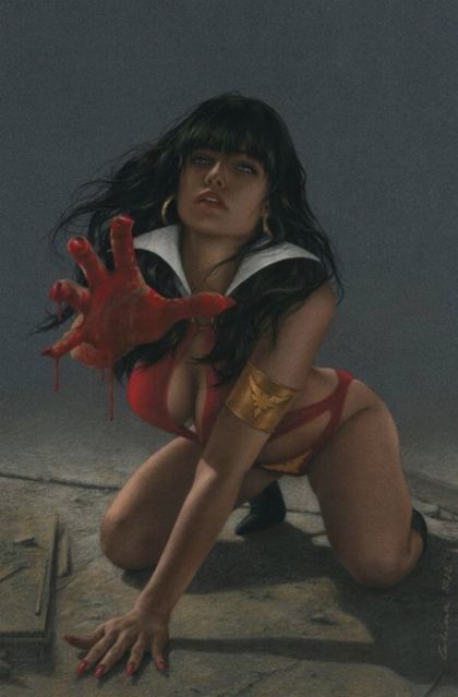Series Finale! Vampirella's husband, Matt Ecsed, is finally free of Dracula's curse... or is he? There are spoilers on literally every page of this hair-trigger climax, including a final page stunner that is also bound to be spoiled by internet trolls! Vampirella's epic love/hate affair with the Lord of Evil concludes here, and the most we can say about this final issue is you'll hate yourself if you miss it (and we'll hate you, too).