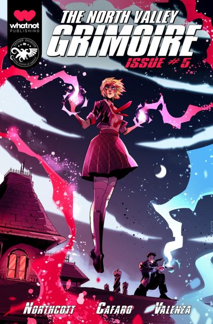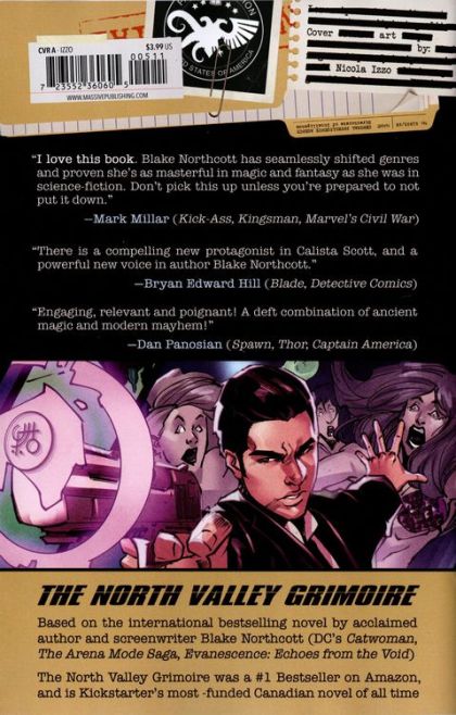 Cover by artist Nicola Izzo best known for his work on Boom! Studios' Firefly Keep Flying as well as numerous contributions to Whatnot Publishing titles like Liquid Kill, Astrobots, and more. SPYCRAFT MEETS SPELLCRAFT in North Valley: a slick, James Bond-style adventure fused with the supernatural suspense of The Magicians. All bets are off in the explosive finale, culminating in a blood-soaked showdown atop The Hawthorne Academy. Calista, Kaz, and Agent Malek risk everything to stop terrorists from getting their hands on The North Valley Grimoire -- and as moles are unmasked and secrets are revealed, they discover what the book was TRULY meant for.