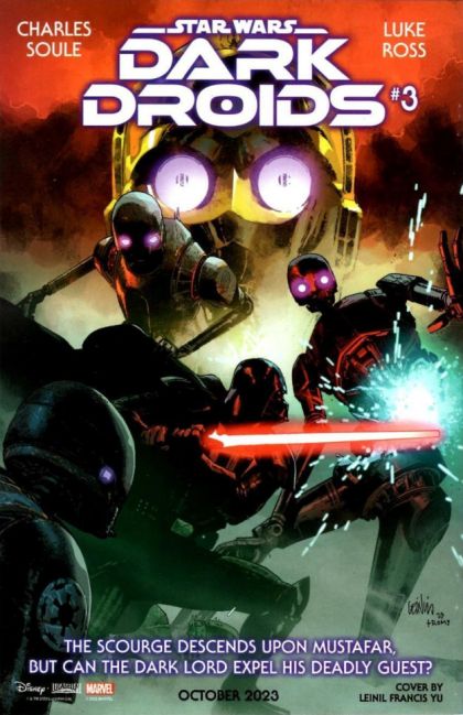 THE UNSUNG HEROES OF THE CLONE WARS RETURN! A terrible scourge is corrupting the galaxy's droids! To fight this menace, ARTOO-DETOO has to assemble a team of droid heroes: THE D-SQUAD! Filled with guest stars from across the galaxy, including a special appearance (and showdown!) by CHOPPER from STAR WARS REBELS. PLUS: THE BOOK OF AJAX provides the missing pieces linking REVELATIONS, DARK DROIDS and HAN SOLO & CHEWBACCA - read to see how IT'S ALL CONNECTED.