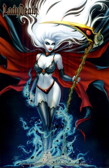 Lady Death has always been the BAD GIRL. But once upon a time, she was absolutely EVIL. Obsessed with annihilation, the diva of death sought to snuff out the entire human race and turn the Earth into an endless graveyard. Thankfully, Lady Death changed her wicked ways to become a champion of the downtrodden and a scourge to demon-kind throughout Hell. For generations, the evil seething within the witch's soul lay dormant... forgotten... Until now.