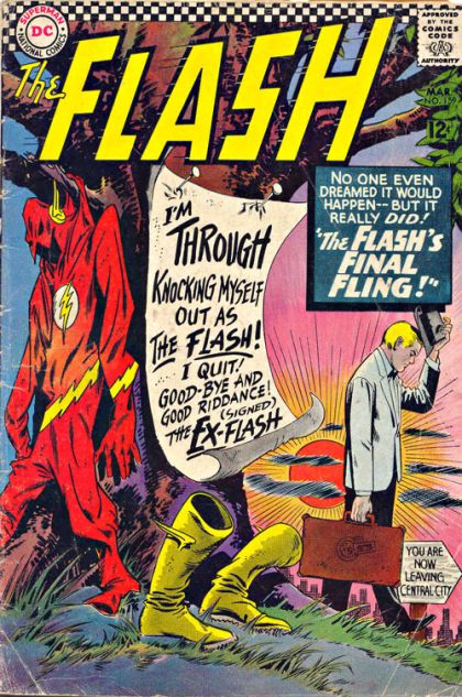 The Flash's Final Fling - When Barry Allen gives up his Flash identity in apparent disgust, Kid Flash vibrates them both into Earth-Two, where Dr. Charles McNider (aka Dr. Mid-Nite of the Justice Society) hypnotically reveals why Barry was manipulated into doing so.