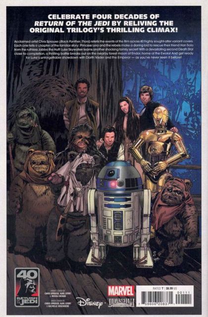 Celebrate four decades of Return of the Jedi by reliving the original trilogy's thrilling climax in a brand-new way! Acclaimed artist Chris Sprouse (BLACK PANTHER, THORS) retells the events of the film across forty highly sought-after variant covers. Each one tells a chapter of the familiar story: Princess Leia and the rebels make a daring bid to rescue their friend Han Solo from the ruthless Jabba the Hutt! Luke Skywalker learns another shocking family secret! With a devastating second Death Star close to completion, a thrilling battle breaks out on the nearby forest moon of Endor, home of the Ewoks! And get ready for Luke's unforgettable showdown with Darth Vader and the Emperor - as you've never seen it before! Rated T