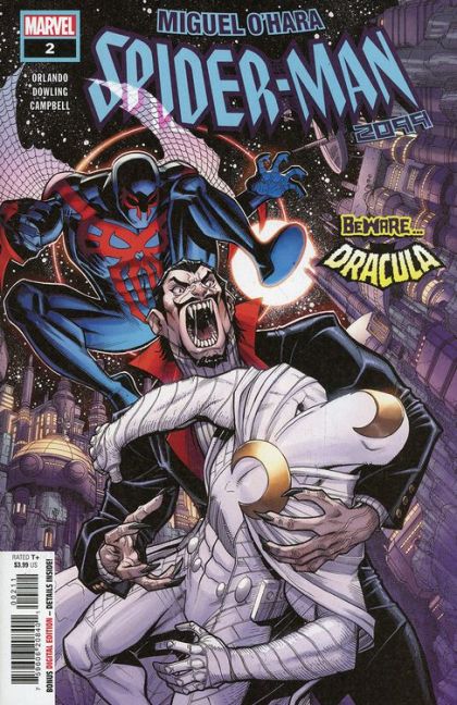 BEWARE - THE LUNAR TOMB OF DRACULA! DRACULA returns! The moon is under attack, and SPIDER-MAN must team up with MOON KNIGHT 2099 to save it! Our celestial web-slinger is going to need some new armor to get through it all! Rated T+