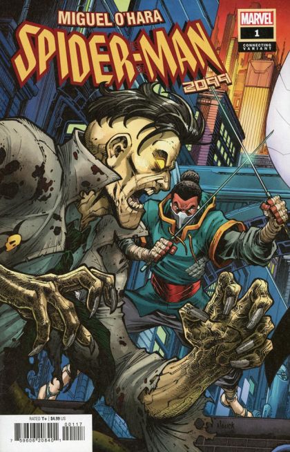 BEWARE - MARVEL ZOMBIE: 2099! MIGUEL O'HARA teams up with BLADE 2099 to take on a new horrific threat to NUEVA YORK! Introducing the MARVEL ZOMBIE of 2099! He lives! He strikes! And no spider can hold him! Will SPIDER-MAN be able to stop the ever-evolving zombie infection before it takes hold of his mother and the citizens of the Barrio? Rated T+