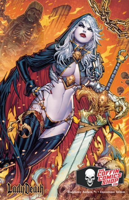 In the wake of the tragic events of Scorched Earth, the extinction-level villainy of The Trinity threatens humanity, the Halo Corporation threatens Lady Death and the Hellbourne Sect appear to be the puppet masters behind it all. To defeat these threats for once and for all, The Sworn, a group of supernatural anti-heroes are assembled. Led by the shape-changing werewoman Steelheart; Michael, the warrior Arch Angel; Wargoth of the Everkind; Zack & Zane Zander, supernatural exterminators extraordinaire; the mysterious supreme sorcerer Mr. Atticus Marrow; witch-in-training Chaotica; dimension jumper Hellslinger; and introducing Lady Satanus, the devil's daughter! What is Lady Death's role in all this? Is she an ally, or an enemy of The Sworn? It all comes down to this, and we promise... in the end, Lady Death is irrevocably changed forever!