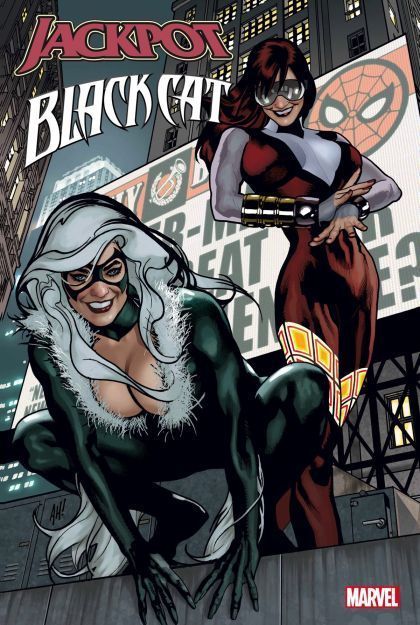 LUCK BE THE LADIES! The most exciting new hero in the Marvel U, JACKPOT, A.K.A. Mary Jane Watson, gets her first action-packed limited series as a super hero alongside the other best female character in comics, BLACK CAT! When someone blackmails Black Cat into a public and blatant crime spree, Jackpot comes to her aid! What classic Spider-Villain is behind the blackmail?! Someone with history with at least one of our titular heroines! Rated T