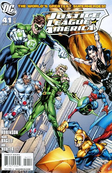 Written by James Robinson Art and covers by Mark Bagley & Rob Hunter Be here for the start of a new Justice League era! The JLA have been getting a pounding in the last couple of months, but NO MORE! The team regroups with a new roster that will transcend time and space! Make way for the World's Greatest Heroes - Batman, Green Lantern, the Atom, Green Arrow, Donna Troy, the Guardian, Cyborg, Mon-El, Starfire, Dr. Light and, yes, Congorilla! This issue features two covers by Mark Bagley which are seperately orderable. Cover A features Green Lantern and Green Arrow; Cover B features Batman and Mon-El. The cover images will be revealed online before the issue's Final Order Cutoff date. On sale January 20 o 40 pg, FC, $3.99 US