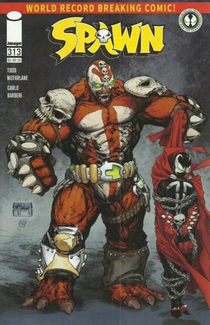 "CULT OF OMEGA," Conclusion-The FINAL confrontation: SPAWN vs. OMEGA SPAWN to the death! If this villain cannot be defeated, then the fabric of time will begin to tear and out will pour the savage warriors of Heaven and Hell upon Earth. TODD McFARLANE and CARLO BARBERI conclude their gut-wrenching story of SPAWN vs. OMEGA SPAWN.