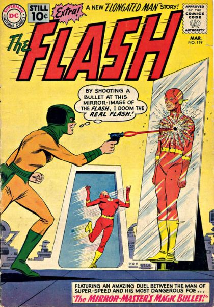 "The Mirror-Master's Magic Bullet" - Barry Allen checks out a local exhibit in antique mirrors, in the hopes of catching the escaped Mirror Master. He doesn't realize that Scudder prepared a trap for him, and he's soon hypnotized into doing Scudder's bidding.