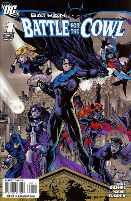 Written by Tony Daniel Art by Tony Daniel & Sandu Florea Covers by Tony Daniel 'Batman: R.I.P.' and FINAL CRISIS saw the end of Batman. Now, months following the disappearance of her protector, Gotham City sits at a precipice and it may be too far gone for Nightwing, Robin, Commissioner Gordon and the rest of the city's heroes to save the day. Amid the fires, rioting, looting and gang warfare, one question rings out from the souls of Gotham's desperate citizens: Where is Batman? With guest-stars galore, the destruction of a sacred Gotham City institution and an ending that will have everyone talking, this 3-issue miniseries event written and drawn by Tony Daniel (The Tenth) features the battle to take on the Mantle of the Bat. Who has earned the right? Who thinks they deserve it? Robin? Nightwing? Jason Todd? Two-Face? Catwoman? Batgirl? Who will ultimately win the BATTLE FOR THE COWL? Retailers please note: This issue will ship with two covers. For every 10 copies of the Standard Edition (with a cover by Tony Daniel), retailers may order one copy of the Variant Edition (with a cover by Tony Daniel). Please see the Previews Order Form for more information. On sale March 11 ? 1 of 3 ? 40 pg, FC, $3.99 US