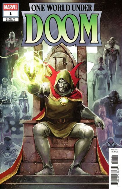ONE WORLD UNDER DOOM! Six months ago, Doctor Victor Von Doom became Sorcerer Supreme - then disappeared behind Latveria's closed borders. For most, there's enough going on in the world that Doom's absence is not a priority, and some time without him feels like a blessing. Only a few recognize it for what it truly was...the calm before the storm. It is a storm that has now arrived. The world has woken up to a new reality: Doctor Doom, Earth's Sorcerer Supreme, has magically taken over every broadcast medium on the planet and declared himself Emperor of the World - the ruler of a new United Latveria! And shockingly, impossibly, all of Earth's leaders seem to be going along with this. Luckily, whether it's mind control or Doombots, whatever's affecting them hasn't affected Earth's heroes - and so they quickly form a strike team to stop Doom's machinations. But will they succeed? And what happens when some begin to welcome their new Emperor with open arms, clamoring for One World Under Doom? Marvel's biggest and most shocking event ever begins right here with THE RISE OF EMPEROR DOOM #1. Rated T+