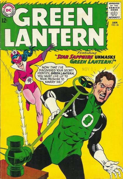 "Star Sapphire Unmasks Green Lantern" - Carol Ferris is overcome by the need to become Star Sapphire once more. This time around, she decides to prove herself a better crimefighter than the Green Lantern, to weaken his will and force him to propose marriage to her.