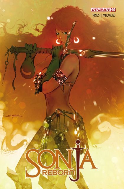 Convinced she is either dreaming, hallucinating, or possibly dead, the recently reconstituted Red Sonja (formerly Maggie Sutherland, late of the UK) decides that her best shot at escaping her apparent nightmare is to simply permit the worst to happen. This places her young squire and ersatz teacher-slash-tour-guide Faolán at great risk, as it falls to him to wake Sonja up to the fact this is really happening before she succeeds at getting both of them killed! Master storyteller CHRISTOPHER PRIEST and acclaimed artist ALESSANDRO MIRACOLO turn up the heat on their all-new She-Devil With a Sword in Sonja Reborn #2 stoked by combustible covers from STJEPAN SEJIC, STUART SAYGER, CHAD HARDIN, GREG LAND, and cosplay by ANI-MIA!