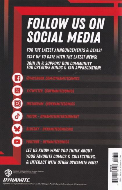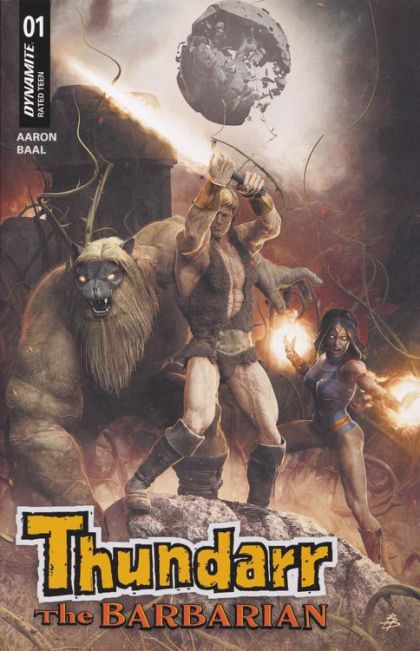 “ARIEL! OOKLA! RIDE!!! When a runaway planet hurtled between the Earth and the Moon, cosmic destruction was unleashed — and mankind’s proud civilizations were cast into ruin! Two millennia later, the planet is nearly unrecognizable — a harsh and savage realm where sorcery and super-science both reign over the powerless masses. Now, rising up from their ranks, one man is breaking the bonds that restrained him. With the help of his faithful companions, Ariel and Ookla the Mok, he has dedicated his life — and the power of his mystical blade, the Sunsword — to liberating his world from the forces of evil. He is Thundarr, the Barbarian, and his story begins here!Visionary comics author JASON AARON (Thor, Avengers, Conan) and acclaimed artist KEWBER BAAL (Vampirella, James Bond) return to the halcyon days of Saturday morning TV in the Dynamite debut of Thundarr the Barbarian, bringing with them all-new tales of the origins of the heroic trio and their ongoing battles against the corrupt forces that dominate their strange new world!Featuring apocalyptically appealing covers from MICHAEL CHO, FRANCESCO MATTINA, BJORN BARENDS, and JOSEPH MICHAEL LINSNER, and ROB LIEFELD, this premier issue also features a special MYSTERY BLIND BAG VARIANT!The Blind Bag contains one limited edition of this historic first issue selected randomly from a range of variant covers exclusive to this offering. Included in that range are a new original cover by DAN PANOSIAN, line art and line art virgin variants, foil variants, and colored blanks. Please Note: The number of Blind Bags is limited, and allocations may occur.
