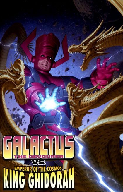 GALACTUS' HUNGER VS. GODZILLA'S APPETITE FOR DESTRUCTION! As the KING IN BLACK and the KING OF THE MONSTERS continue to cut a bloody swath across the universe, spreading KNULL'S symbiotic infection, heroes across the cosmos take desperate measures to stem the tides! THE FANTASTIC FOUR make an ally of an old enemy as elsewhere GODZILLA'S roar awakens its own ancient adversary - KING GHIDORAH! As these forces collide over ASGARD, only one thing is assured - the MARVEL COSMOS will never be the same again!