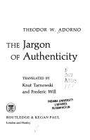 [by] Theodor W. Adorno; Translated By Knut Tarnowski And Frederic Will. First Published In German As Jargon Der Eigentlichkeit: Zur Deutschen Ideologie.