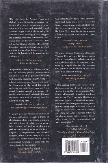 Imperialism as we knew it may be no more, but Empire is alive and well. It is, as Michael Hardt and Antonio Negri demonstrate in this bold work, the new political order of globalization. It is easy to recognize the contemporary economic, cultural, and legal transformations taking place across the globe but difficult to understand them. Hardt and Negri contend that they should be seen in line with our historical understanding of Empire as a universal order that accepts no boundaries or limits. Their book shows how this emerging Empire is fundamentally different from the imperialism of European dominance and capitalist expansion in previous eras. Rather, today's Empire draws on elements of U.S. constitutionalism, with its tradition of hybrid identities and expanding frontiers.Empire identifies a radical shift in concepts that form the philosophical basis of modern politics, concepts such as sovereignty, nation, and people. Hardt and Negri link this philosophical transformation to cultural and economic changes in postmodern society--to new forms of racism, new conceptions of identity and difference, new networks of communication and control, and new paths of migration. They also show how the power of transnational corporations and the increasing predominance of postindustrial forms of labor and production help to define the new imperial global order.More than analysis, Empire is also an unabashedly utopian work of political philosophy, a new Communist Manifesto. Looking beyond the regimes of exploitation and control that characterize today's world order, it seeks an alternative political paradigm--the basis for a truly democratic global society.