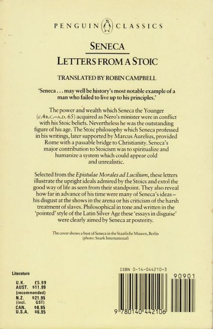 "It is philosophy that has the duty of protecting us...without it no one can lead a life free of fear or worry."For several years of his turbulent life, Seneca was the guiding hand of the Roman Empire. His inspired reasoning derived mainly from the Stoic principles, which had originally been developed some centuries earlier in Athens. This selection of Seneca's letters shows him upholding the austere ethical ideals of Stoicism—the wisdom of the self-possessed person immune to overmastering emotions and life’s setbacks—while valuing friendship and the courage of ordinary men, and criticizing the harsh treatment of slaves and the cruelties in the gladiatorial arena. The humanity and wit revealed in Seneca’s interpretation of Stoicism is a moving and inspiring declaration of the dignity of the individual mind.For more than seventy years, Penguin has been the leading publisher of classic literature in the English-speaking world. With more than 1,700 titles, Penguin Classics represents a global bookshelf of the best works throughout history and across genres and disciplines. Readers trust the series to provide authoritative texts enhanced by introductions and notes by distinguished scholars and contemporary authors, as well as up-to-date translations by award-winning translators.