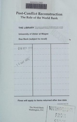 The nature, scale, and proliferation of conflicts--particularly interstate conflicts--in this post-cold war era are undermining development in a wide range of countries, threatening national and regional stability in some areas and diverting international attention and scarce resources from pressing development problems. In recent years operations in countries emerging from conflict have become a significant proportion of the Bank ' s portfolio. The costs of reconstruction can be large, requiring the international community to act in concert. The Bank needs to consolidate its learning and more clearly define its evolving role to ensure that its comparative advantage is put to its best use, and that its operations realize the potentially high returns to reconstruction activities. This report first examines the impact of conflicts on international development efforts. Then it briefly discusses the factors that can precede, sustain, or re-ignite conflict. Subsequent sections deal with the need to integrate the issue of conflict prevention into the overall development paradigm, the challenges of post-conflict reconstruction, and the roles of various players that are part of the international response. It then sums up Bank experience to date and reviews its emerging role in post-conflict reconstruction, and its strengths and weaknesses in fulfilling this role. Finally, it makes recommendations to improve Bank responsiveness to the realities of post-conflict situations.
