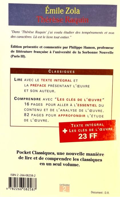Dans 'Thérèse raquin', Zola a voulu étudier des tempéraments et non des caractères. Il a choisi des personnages souverainement dominés par leurs nerfs et leur sang, dépourvus de libre arbitre, entraînés à chaque acte de leur vie par les fatalités de leur chair - Thérèse et Laurent sont des brutes humaines, rien de plus. En un mot, il n'a eu qu'un désir - tant donné un homme puissant et une femme inassouvie, chercher en eux la bête, ne voir même que la bête, les jeter dans un drame violent, et noter scrupuleusement les sensations et les actes de ces êtres. Il a simplement fait sur deux corps vivants le travail analytique que les chirurgiens font sur les cadavres.
