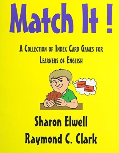 Match It! is a collection of index card games based on the game Matched Pairs in Pro Lingua's Index Card Games for ESL. Matched Pairs is in turn based on the popular game Concentration. There are seven variations of the basic game, and there are 83 sets of cards in this photocopyable teacher resource book. There are two basic purposes for this collection: to develop vocabulary and to stimulate conversation. At the basic and intermediate level, there are sets covering numbers, symbols, arithmetic, measurements, months and ordinals, days, time, irregular verbs in the past, past participles, phrasal verbs, opposites, negation, synonyms, antonyms, suffixes and affixes. There are also everyday life topics like family, housework, weather, health, making a living, holidays, and finances. For more advanced students, there are sets of cards introducing compounds, collocations, idioms, and proverbs.