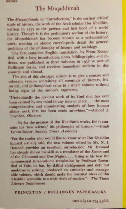 The Muqaddimah, often translated as "Introduction" or "Prolegomenon," is the most important Islamic history of the premodern world. Written by the great fourteenth-century Arab scholar Ibn Khaldûn (d. 1406), this monumental work laid down the foundations of several fields of knowledge, including philosophy of history, sociology, ethnography, and economics. The first complete English translation, by the eminent Islamicist and interpreter of Arabic literature Franz Rosenthal, was published in three volumes in 1958 as part of the Bollingen Series and received immediate acclaim in America and abroad. A one-volume abridged version of Rosenthal's masterful translation was first published in 1969.This new edition of the abridged version, with the addition of a key section of Rosenthal's own introduction to the three-volume edition, and with a new introduction by Bruce B. Lawrence, will reintroduce this seminal work to twenty-first-century students and scholars of Islam and of medieval and ancient history.