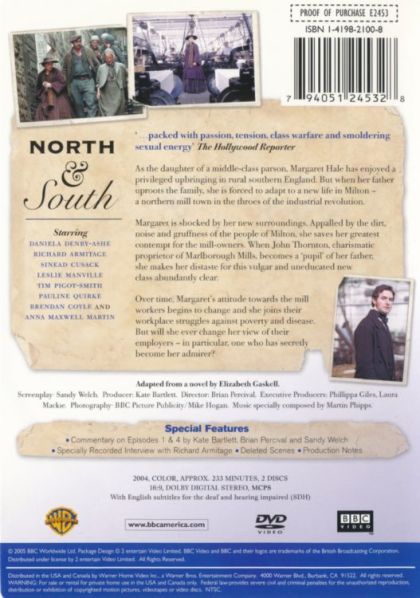 North and South is a four part adaptation of Elizabeth Gaskell's love story of Margaret Hale, a middle class southerner who is forced to move to the northern town of Milton.
