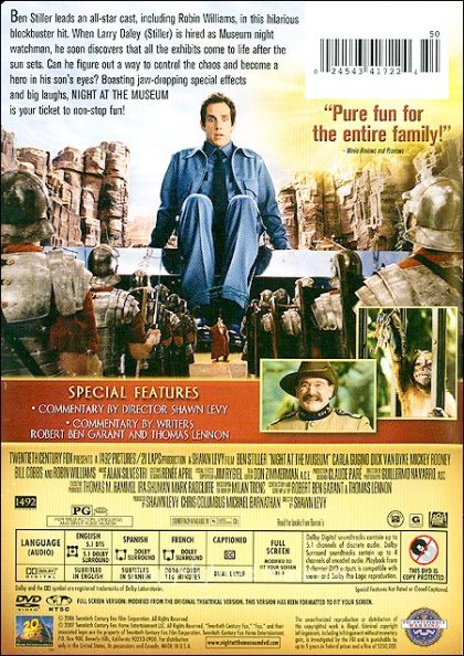 Chaos reigns at the natural history museum when night watchman Larry Daley accidentally stirs up an ancient curse, awakening Attila the Hun, an army of gladiators, a Tyrannosaurus rex and other exhibits. Larry tries desperately to keep the museum under control, but he's fighting a losing battle until President Teddy Roosevelt comes to the rescue.