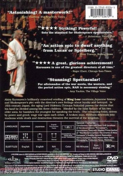A story of greed, a lust for power, and ultimate revenge when an elderly lord abdicates to his three sons, and the two corrupt ones turn against him. A profound examination of the folly of war and the crumbling of one family under the weight of betrayal, greed, and the insatiable thirst for power.