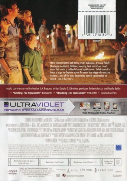 In December 2004, close-knit family Maria (Naomi Watts), Henry (Ewan McGregor) and their three sons begin their winter vacation in Thailand. But the day after Christmas, the idyllic holiday turns into an incomprehensible nightmare when a terrifying roar rises from the depths of the sea, followed by a wall of black water that devours everything in its path. Though Maria and her family face their darkest hour, unexpected displays of kindness and courage ameliorate their terror.