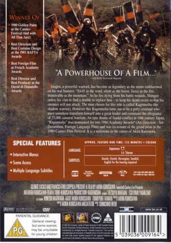 When a warlord dies, a peasant thief is called upon to impersonate him, in order to protect his clan from appearing weak and vulnerable. But he finds himself haunted by the warlord’s spirit as well as his own ambitions.