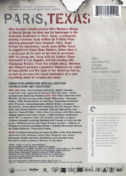 German director Wim Wenders won the Golden Palme at Cannes for his 1984 film Paris, Texas. The film reflects the landscape and people of the United States from the perspective of European cinema.