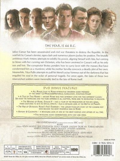 "Rome" is the saga of two ordinary Roman soldiers and their families. An intimate drama of love and betrayal, masters and slaves, and husbands and wives, it chronicles epic times that saw the fall of a republic and the creation of an empire. The series begins in 52 BC, as Gaius Julius Caesar has completed his masterful conquest of Gaul after eight years of war, and is preparing to return to Rome. He heads home with thousands of loyal battle-hardened men, huge amounts of loot in gold and slaves, and a populist agenda for radical social change. Terrified, the aristocracy threatens to prosecute Caesar for war crimes as soon as he sets foot in Rome. Caesar's old friend and mentor, Pompey Magnus, attempts to foment mutiny in order to maintain the balance of power. Two of Caesar's soldiers, Lucius Vorenus and Titus Pullo, thwart Pompey's plan and in the process, win the eternal gratitude of Caesar and the Julian clan, affording the two plebian officers an intimate view of the ruling class. The fates of Pullo and Vorenus become entwined with those of Caesar, Mark Antony, Cleopatra and the boy Octavian, a strange and awkward child who, by political guile and bloody force, will become the first emperor of Rome.