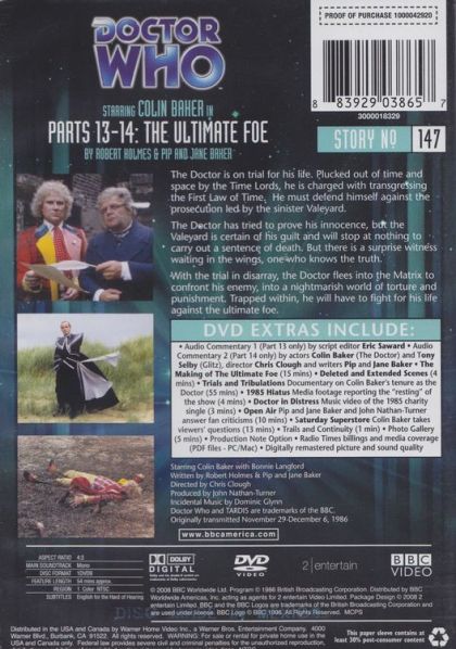 With the help of Mel, who along with Glitz has been brought to the space station by the Master, the Doctor defeats his future self - although, as they leave in the TARDIS with all charges in the trial having been dropped, it appears that the Valeyard has taken over the body of the Keeper of the Matrix and may not have been as completely vanquished as they had thought...