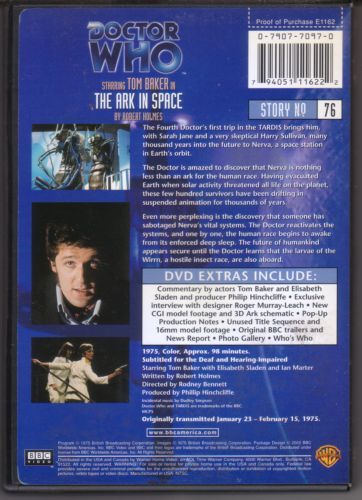 The TARDIS lands on a space station orbiting the Earth in the distant future. It's seemingly deserted, but the Doctor, Sarah Jane, and Harry soon discover that they are not alone. Thousands of humans - the only survivors of the human race - are in cryogenic sleep, and while they've slept their Ark has been invaded. A parasitic insect race - the Wirrn - has taken control and threatens the very future of mankind.