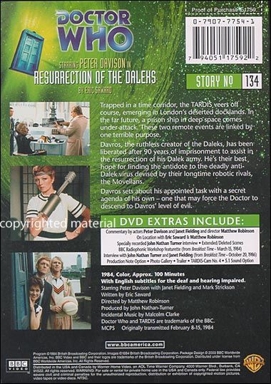 Commander Lytton, an alien mercenary working for the Daleks, escapes to Earth. Tegan, sickened by all the killing she has seen, decides to remain on her home planet.