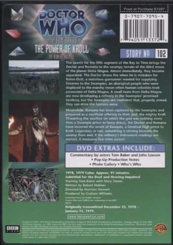 The Doctor and Romana are trapped between the monstrous Kroll and the insane refinery commander. And there is no sign of the fifth segment of the Key to Time.