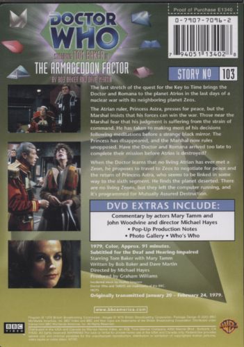 The Key to Time is almost complete. WIth only one piece still to find, the Doctor, Romana, and K-9 arrive on Atrios, a planet in the middle of a terrible war with its twin world Zeos. To restore the balance of the universe for the White Guardian, the Doctor must find the sixth segment before the planets destroy each other - but Zeos is deserted, so who is behind the war?