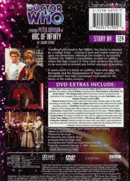 An antimatter creature has crossed into normal space via a phenomenon known as the Arc of Infinity but needs to bond physically with a Time Lord in order to remain stable. A traitor on Gallifrey has chosen the Doctor as the victim.