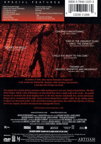 In October of 1994 three student filmmakers disappeared in the woods near Burkittsville, Maryland, while shooting a documentary. A year later their footage was found.