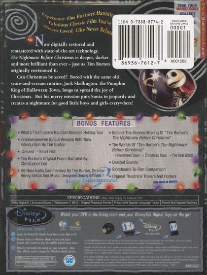 Tired of scaring humans every October 31 with the same old bag of tricks, Jack Skellington, the spindly king of Halloween Town, kidnaps Santa Claus and plans to deliver shrunken heads and other ghoulish gifts to children on Christmas morning. But as Christmas approaches, Jack's rag-doll girlfriend, Sally, tries to foil his misguided plans.