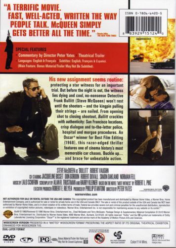Senator Walter Chalmers is aiming to take down mob boss Pete Ross with the help of testimony from the criminal's hothead brother Johnny, who is in protective custody in San Francisco under the watch of police lieutenant Frank Bullitt. When a pair of mob hitmen enter the scene, Bullitt follows their trail through a maze of complications and double-crosses. This thriller includes one of the most famous car chases ever filmed.