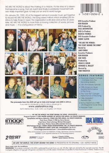 We Are the World: The Story Behind the Song is a documentary which examines how the song was written, how producer Quincy Jones and songwriters Michael Jackson and Lionel Richie persuaded some of the most popular performers in America to donate their services to the project, and offers a behind-the-scenes look at the marathon recording session that produced the single.