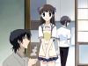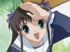 Kagura visits. She's another cursed human, who believes herself betrothed to Kyo, though Kyo holds quite a contrary opinion about it. She seems a sweet girl but very insecure and overly aggressive, with emotions flipping instantly from one to a hundred with no middle ground, frequently becoming a very real, physical threat to Kyo, the very object of her intense affections. Tohru tries to guess which zodiac animal is she while Kagura wonders why there's a girl living in the Shoma house.