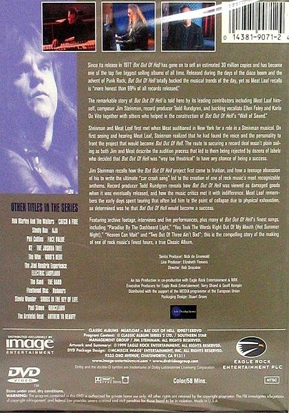 Never one for understatement, the aptly named singer known as Meat Loaf (aka Marvin Lee Aday) teamed with operatically-minded pianist-composer Jim Steinman to produce a bombastic slab of 1970s classic rock that has become one of the biggest selling albums of all time. Fueled by Steinman's epic compositions, Todd Rundgren's grandiose production, and Meat Loaf's own soaring vocals, the singer's 1977 debut BAT OUT OF HELL elevated the rock-opera genre to appropriately theatrical heights with its extravagant orchestration and a melodramatic narrative celebrating teenage rebellion. This episode of the CLASSIC ALBUMS series recounts the making of this monumental work through interviews, archival footage, and live performances of album tracks such as "You Took the Words Right Out of My Mouth," "Two Out of Three Ain't Bad," and, of course, the adolescent opus "Paradise by the Dashboard Light."