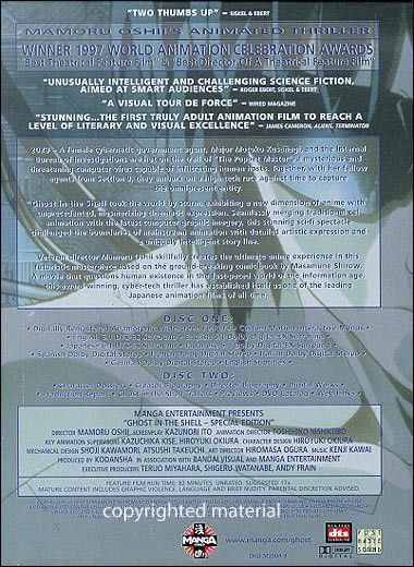 In the year 2029, the barriers of our world have been broken down by the net and by cybernetics, but this brings new vulnerability to humans in the form of brain-hacking. When a highly-wanted hacker known as 'The Puppetmaster' begins involving them in politics, Section 9, a group of cybernetically enhanced cops, are called in to investigate and stop the Puppetmaster.