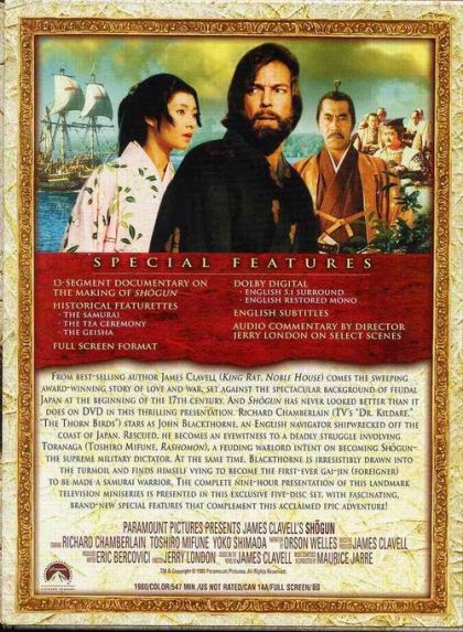 Based on the adventures of English navigator William Adams. The series follows Pilot John Blackthorne's experiences in Japan in the early 1600's. After his ship is wrecked along the coast of Japan, Blackthorne must juggle his identity as an Englishman associated with other Europeans, namely Portuguese traders and Jesuit priests, and the Japanese culture into which he is thrust.
