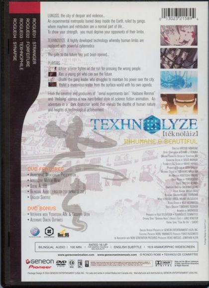 Japan’s top creators from production house Madhouse presents a new, hard-boiled style of science fiction animation. This hard-edged anime follows the adventures of underground boxer Ichise, whose arm and leg are cut off by gangsters, the ruling elite in the underground world of Lukuss. Texhnolyze, a cybernetic technology which replaces human limbs with artifical ones, is usually reserved for the gangster elite, but may become available to Ichise.