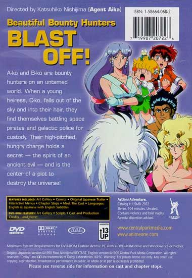 In an alternate universe, A-ko and B-ko are bounty hunters on an untamed world. When a young heiress, C-ko, falls out of the sky and intot heir hair, they find themselves battling space pirates and galactic police for custody!