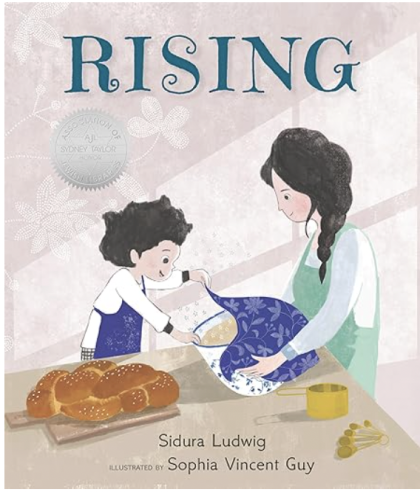 Melt into the nooks and crannies of this book’s unhurried pages, offering a place to rest and a pregnant pause for counting your many blessings—current and imminent! Here, a child and a mother measure, mix, knead, shape, and tuck their dough under a towel like a sleeping baby. Then, as they do every week, they wait while their dough rises, soon to be baked and gratefully shared at a Shabbat gathering with loved ones. Author Sidura Ludwig’s poetic narration captures the experience of a Jewish family as they make challah—a lesson in patience, slowing down, faith, and family. Illustrator Sophia Vincent Guy brings light and warmth to the scene, from a sun-bleached, gossamer curtain to the rising steam from the bread, all rendered in delicate, decorative patterns. Whatever their background, readers will be happy to find the author’s go-to recipe for challah at the end, along with a glossary and an author’s note describing the personal meaning of her family’s weekly ritual.